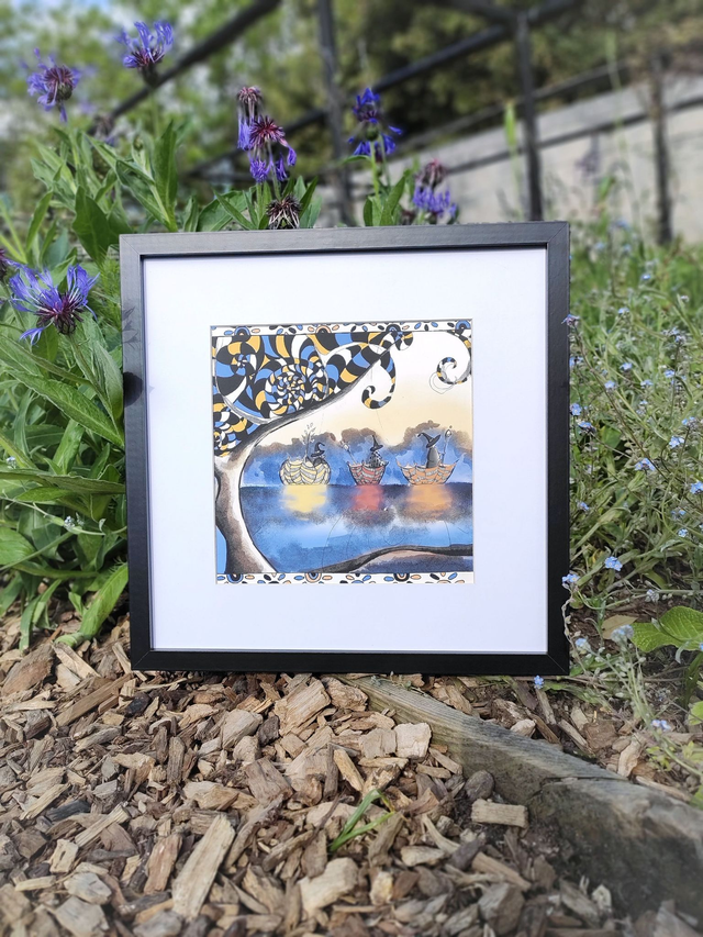 Illustration réalisée à l’encre noir ; mise en couleur digitale ; imprimée en couleur sur du papier épais 300g/m², avec une finition mat.