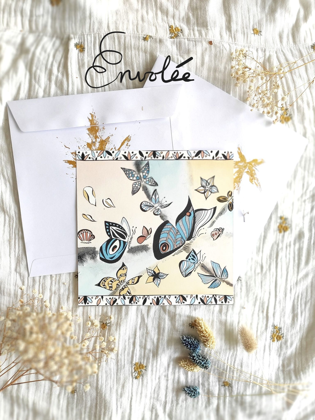 Cette carte (ou affiche) "Envolée" souffle un vent de légereté avec cet ensemble de papillons prêts à conquérir le ciel 🦋