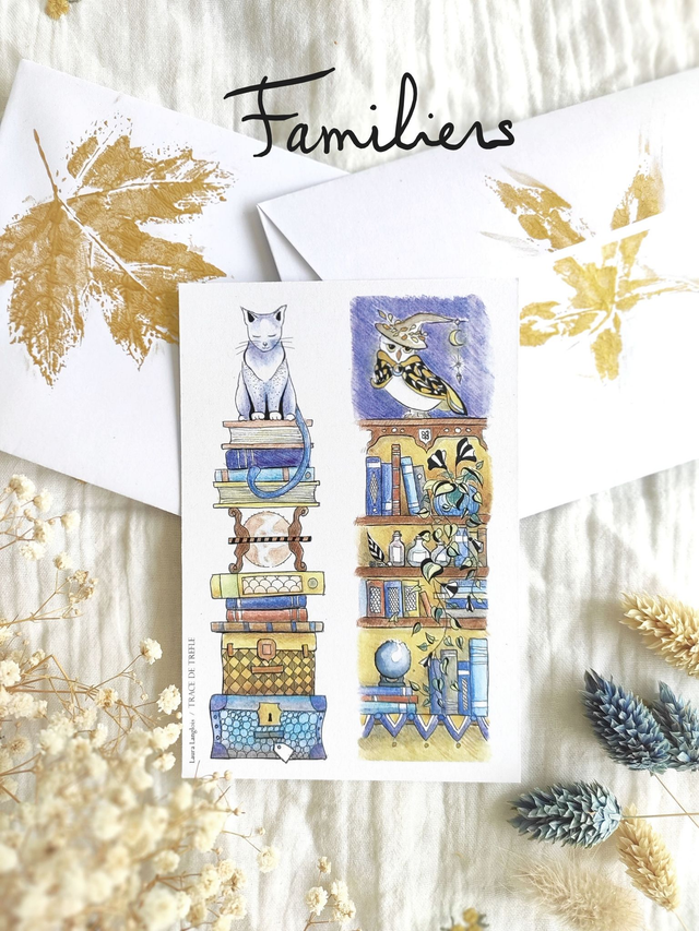 Offerte si souhaitée : une enveloppe par carte, blanche avec emprunte de feuille dorée réalisée par Trace de Trèfle