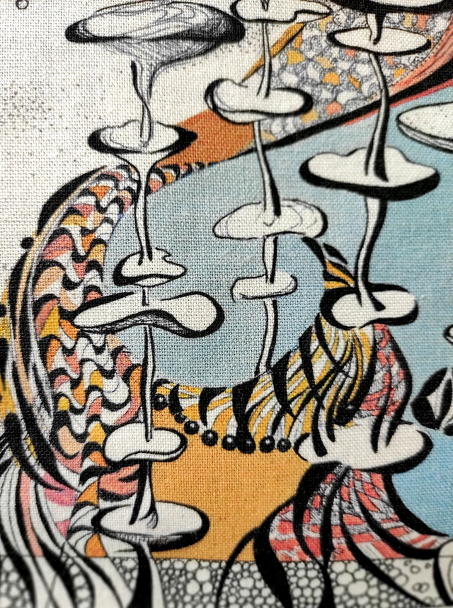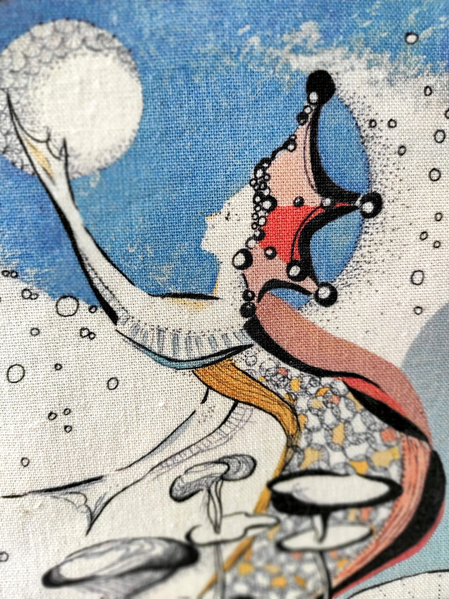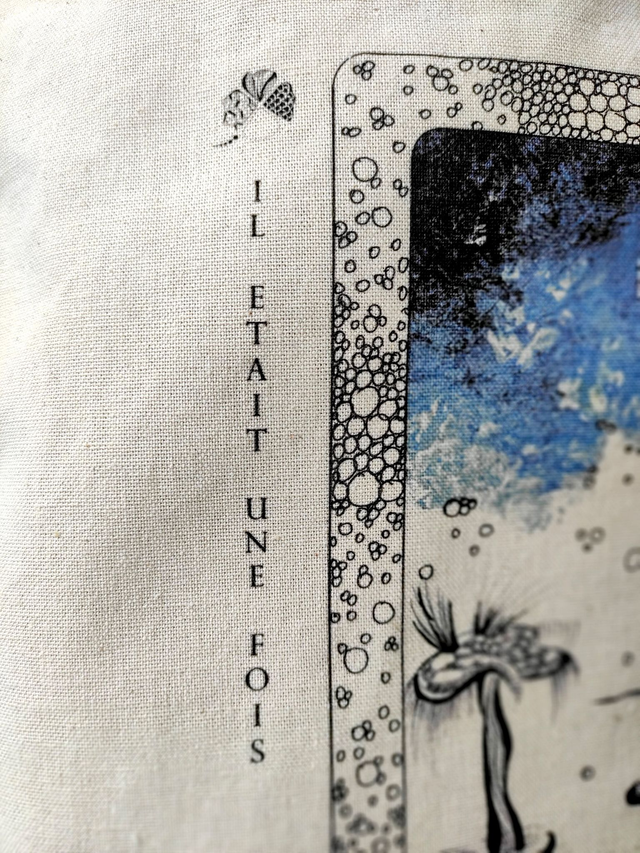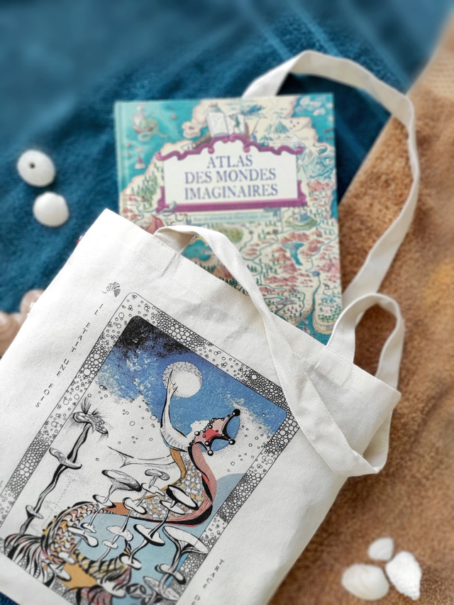 ~ Illustration réalisée à l'encre et à l'acrylique; imprimée en couleur sur sac beige en coton.